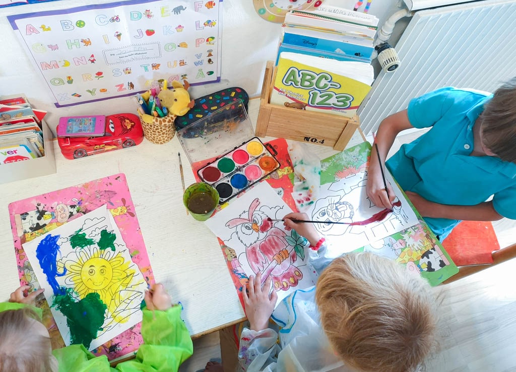 When they start to get interested in painting and drawing, it’s really good to get a good start in how to hold the color and pencil, lovingly correct and help them hold it correctly, then you get a good start for school and the muscles in the fingers are trained.